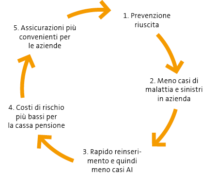 - Quanto minori sono le perdite dovute all’incapacità lavorativa, tanto più bassi sono i costi di rischio che le assicurazioni d’indennità giornaliera per malattia e le casse pensioni devono considerare.